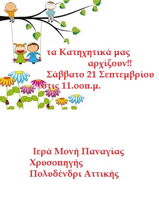 Tα Κατηχητικά μας αρχίζουν !! Σάββατο 21 Σεπτεμβρίου στην Ιερά Μονή Παναγίας Χρυσοπηγής.